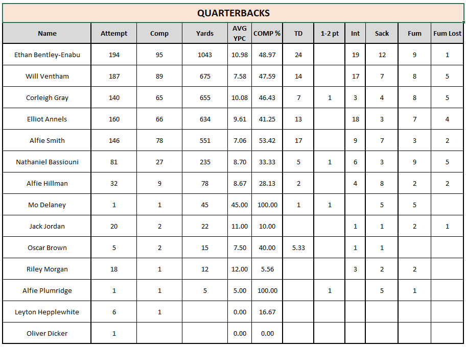 Under 16 & 19 – All Time PASSING Posted on 16/10/2025 by Neil Loveless OFFENSIVE PASSING STATS BACK TO STATS HOME