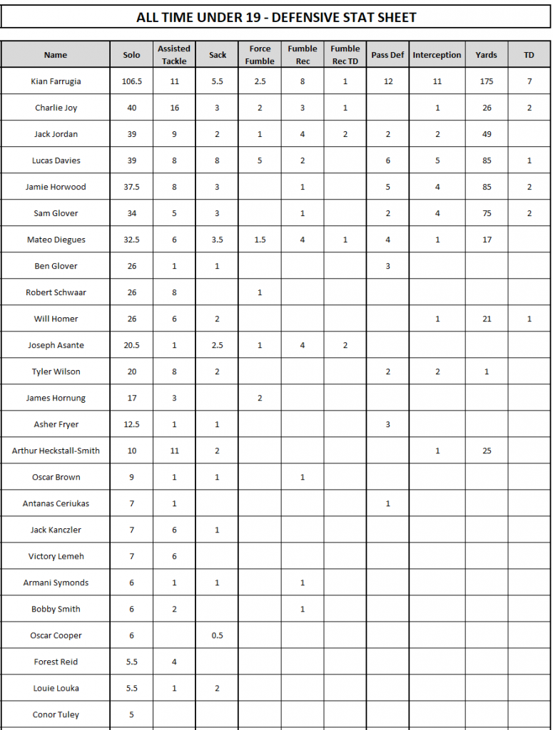 Under 19 – All Time RUSHINGUnder 16 & 19 – All Time PASSING