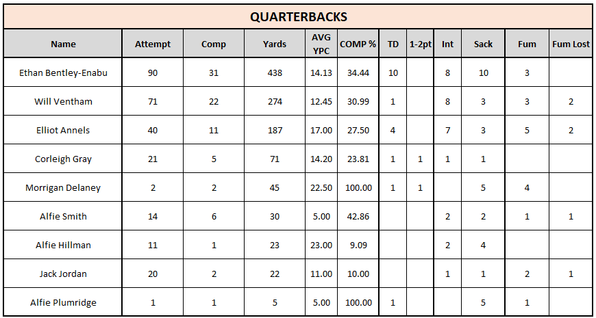 Under 19 – All Time PASSING Posted on 08/09/2025 (08/09/2025) by Neil Loveless OFFENSIVE PASSING STATS BACK TO STATS HOME